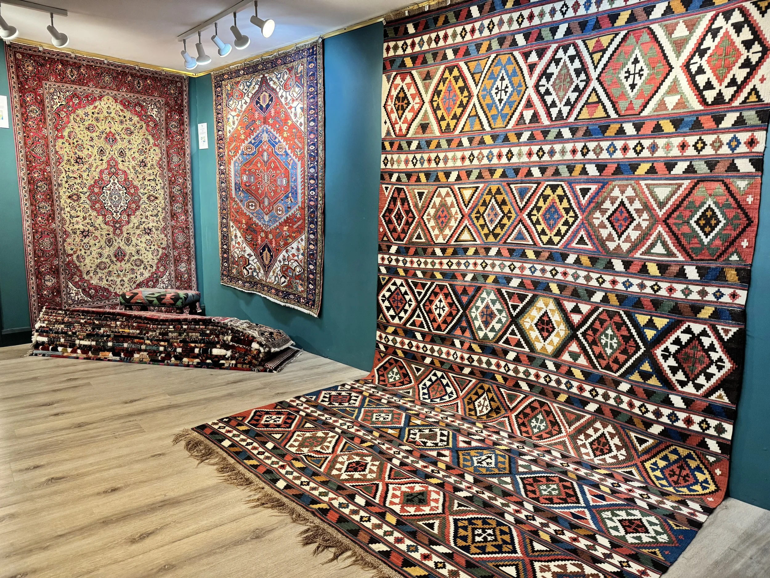 My rugs (and me!) can be found on the lower ground floor of the Home & Colonial shop in the historic market town of Berkhamsted in Hertfordshire.